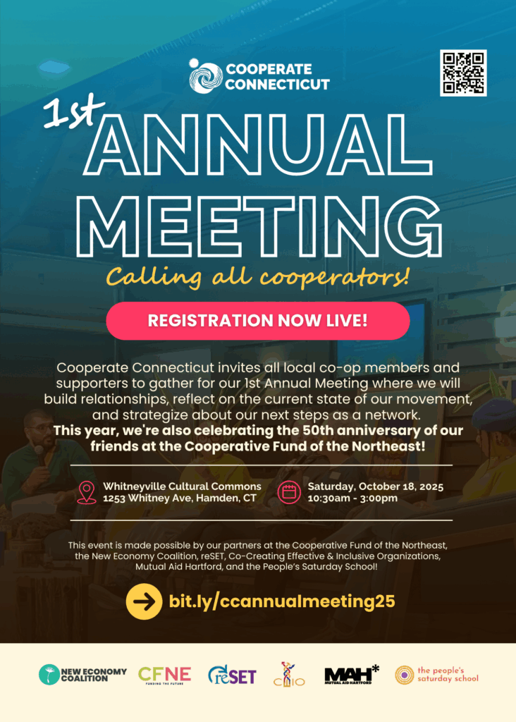 Prior to 2023, there were only a handful of co-ops in Connecticut and there was no central hub for local cooperators to connect, learn, and take collective action. Over the past three years, more co-ops have emerged and a small group of cooperators have tended the soil and laid the groundwork for this network to exist.